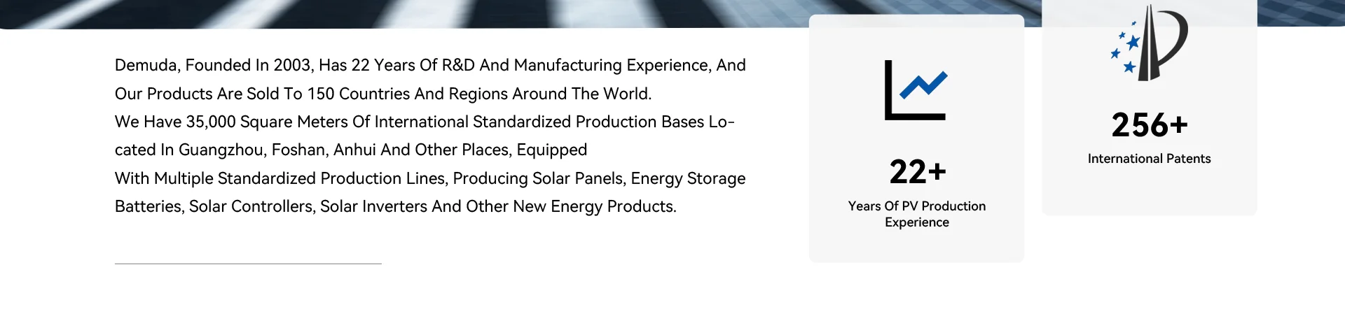 ผลิตภัณฑ์หลัก:แผงโซลาร์เซลล์, ระบบพลังงานแสงอาทิตย์, อินเวอร์เตอร์พลังงานแสงอาทิตย์, แบตเตอรี่พลังงานแสงอาทิตย์, สถานีพลังงานแบบพกพา